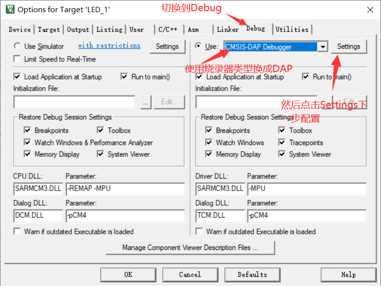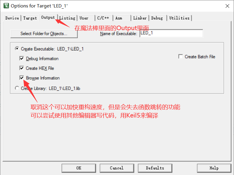 烧录程序前一定要编译且没有错误,尽量不要有警告,实在无法避免的警告最好屏蔽掉,然后打开魔法棒配置烧录器