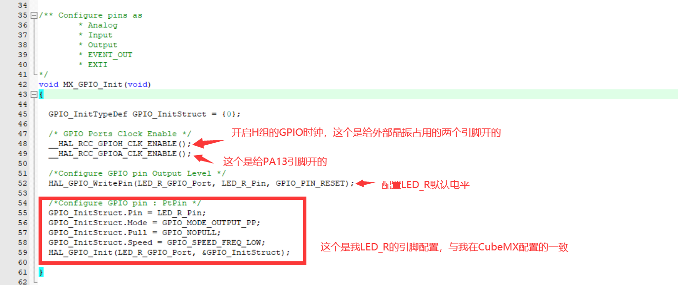 HAL_GPIO_WritePin(LED_R_GPIO_Port, LED_R_Pin, GPIO_PIN_RESET); // 将引脚置为低电平