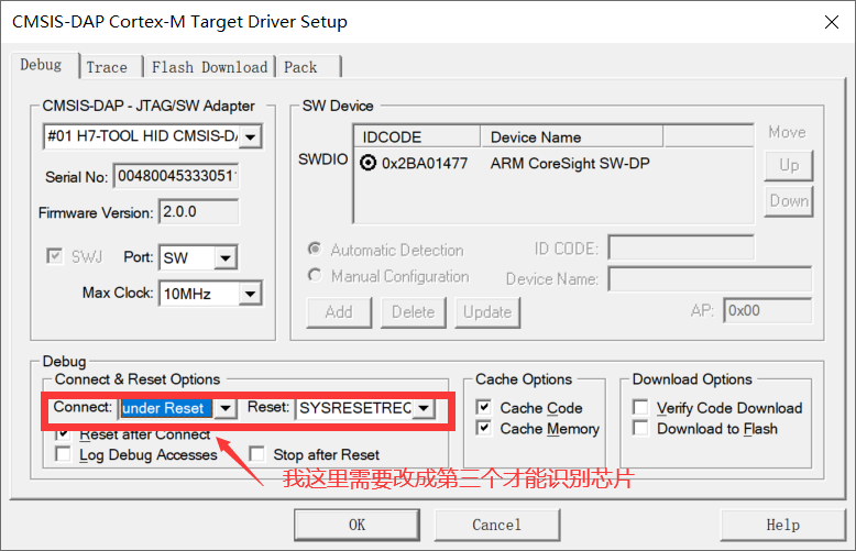 • 修改这几个框里面的选项有可能也可以识别到芯片,然后正常下载程序