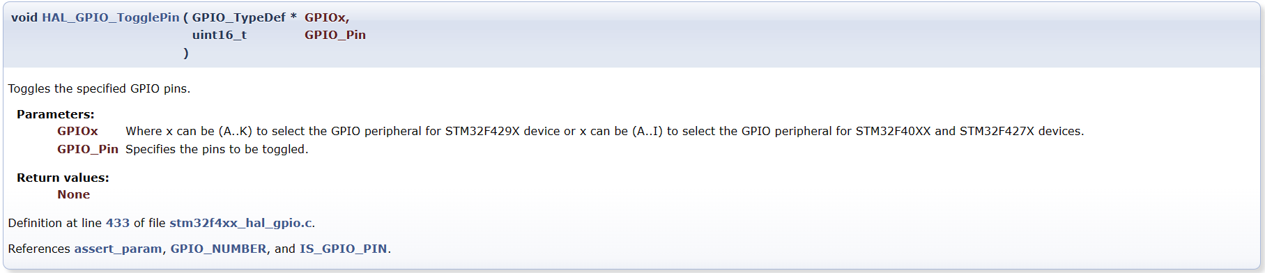 void HAL_GPIO_TogglePin(GPIO_TypeDef* GPIOx, uint16_t GPIO_Pin);