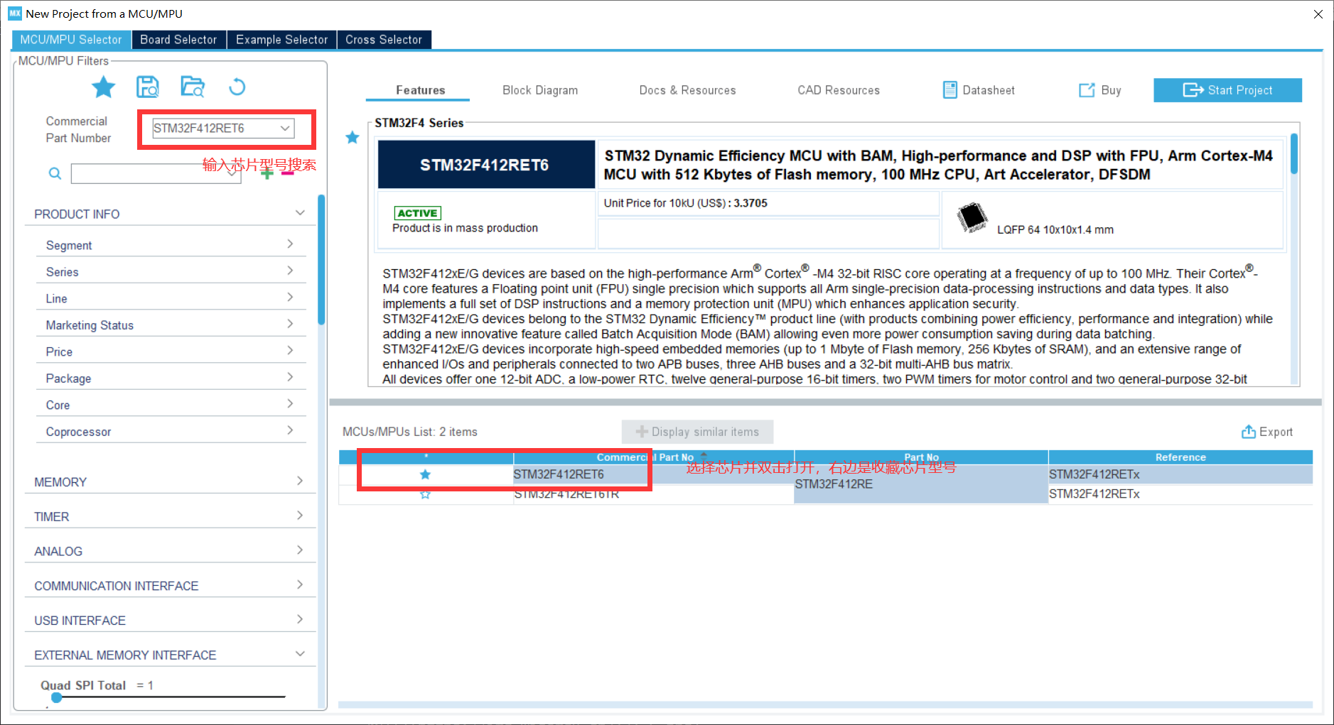可以看到主控芯片是STM32F412RET6
