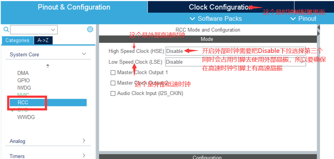 将Disable下拉选择第三个开启外部高速时钟